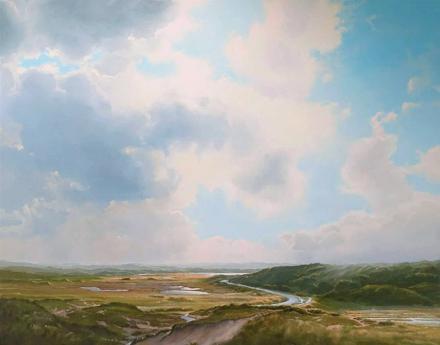“Ik hou nog steeds het meeste van het landschap op Vlieland, maar ook van de andere eilanden kan ik genieten: van het strand, de duinen, de wolken en het wad. Ik schilder geen mensen in mijn schilderijen. Ze leiden de aandacht af van de ruimte. Als ik naar een eiland ga, voel ik een soort lichtheid en gevoel van vrijheid”, omschrijft de waddenschilder.