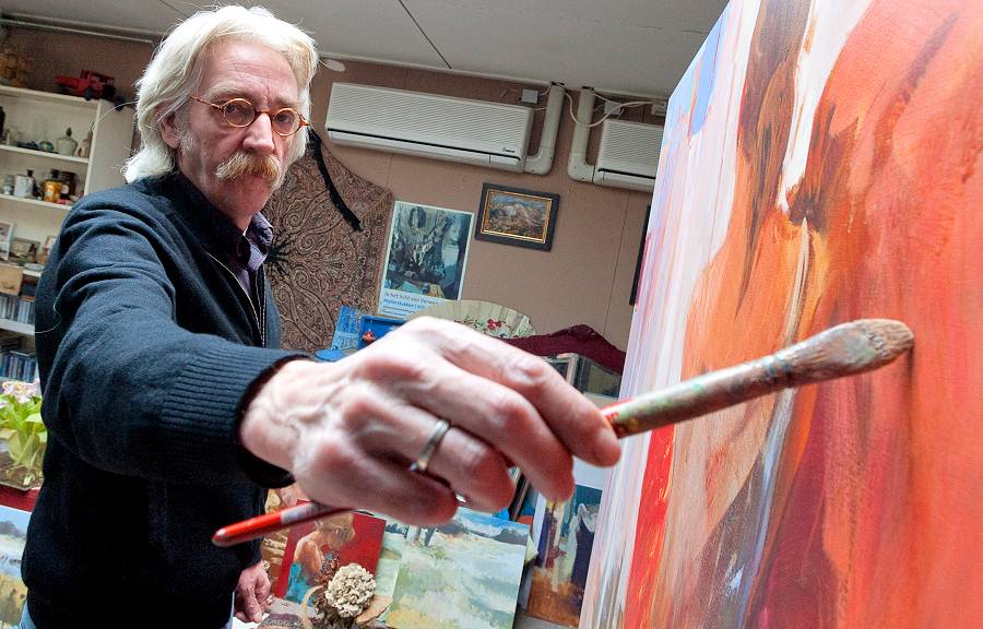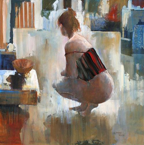 Gerard van de Weerd (1952) schildert verstilde taferelen, waarin zuivere vlakken, eenvoud en een impressionistische schilderstijl de boventoon voeren. Wat echter allerminst afbreuk doet aan de sterke verhalende kracht van zijn schilderijen. Met behulp van licht, het samenspel van diepe, heldere kleuren en de driedimensionale kracht van royaal aangebrachte lagen olieverf afgewisseld met lege vlakken, weet van de Weerd een sfeer te creëren, die tegelijk intiem, spannend en dynamisch is. De kunstenaar schildert bij voorkeur in zijn eigen atelier in Hoogeveen, waar eerst een ruwe versie van het beoogde onderwerp wordt opgezet, waarna het schilderij vanuit zichzelf mag ontstaan. Realistische en vrij bedachte elementen worden tijdens het schilderproces in een harmonieuze compositie met elkaar verenigd.
