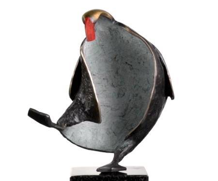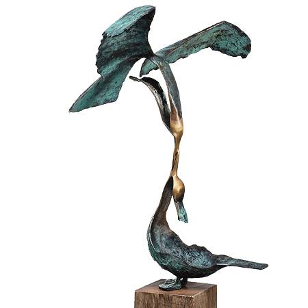Oefening baart kunst, is echter ook van toepassing op Leon Veerman. Naarmate hij meer vlieguren heeft gemaakt is zijn bedrevenheid als kunstenaar zo geperfectioneerd dat hij inmiddels in staat is om de grenzen van het onmogelijke, en dus de ultieme vrijheid, op te zoeken. Menig technisch hoogstandje komt vandaag de dag uit zijn atelier. En uit ervaring weet ik dat deze ‘onwaarschijnlijk knappe constructies’ vaak niet eens worden opgemerkt door de toeschouwer, omdat deze volledig in de ban is van het bekoorlijke totaalbeeld. Daarom ga ik u er nu toch op wijzen, want ik durf wel te stellen dat wat Leon doet vrij uniek en onnavolgbaar is. Blader in zijn boek, of beter nog struin langs zijn echte werk, en sta eens stil bij een beeld als ‘Roerloos’, ‘Oefening in geduld’, ´Zwervend over de zuidzee’, ‘De Stille’ of willekeurig één van zijn kleine drukke vogelbeeldjes.