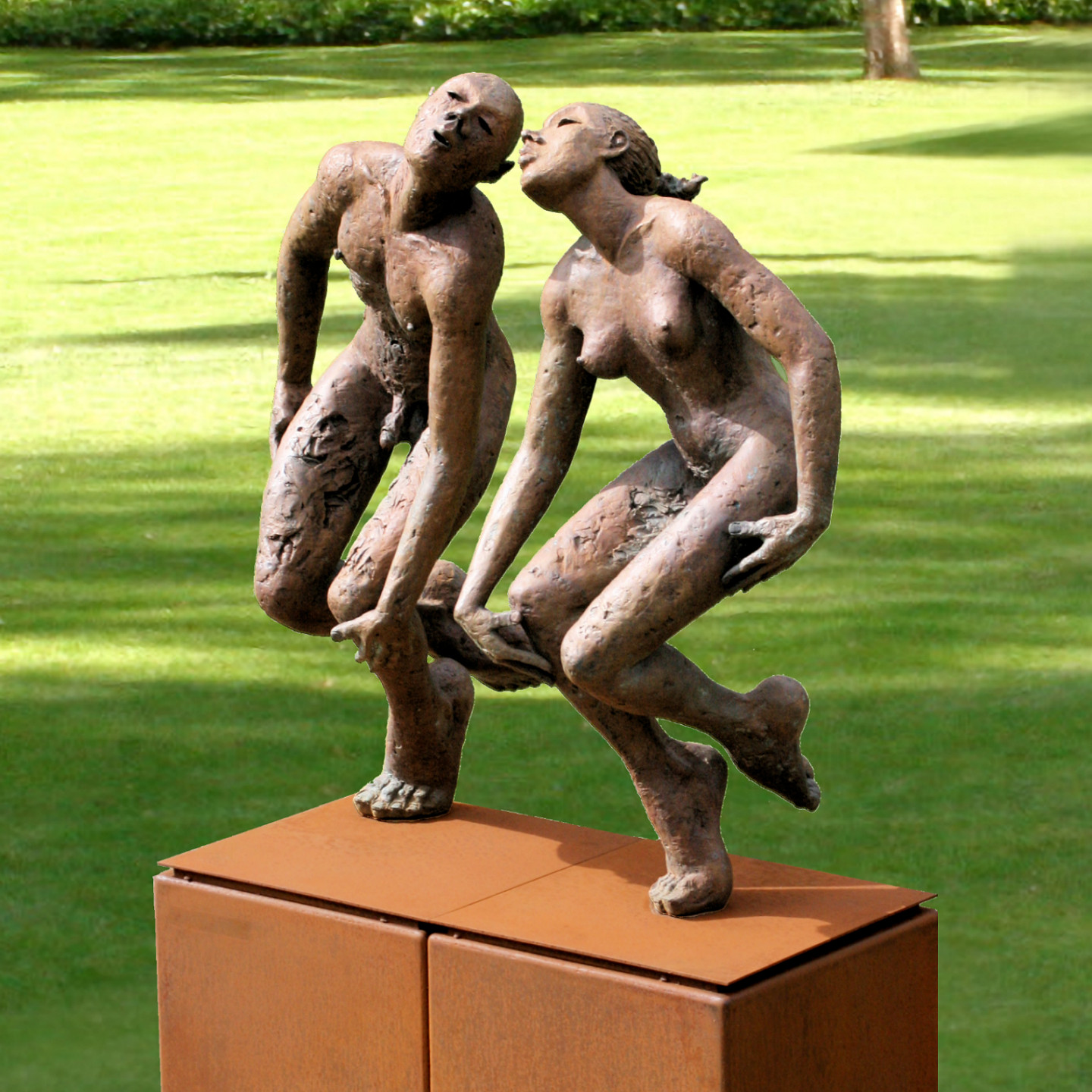 Het beeld is 90 cm hoog en voorzien van een cortenstalen voetplaat. De totale afmeting is 90 cm hoog