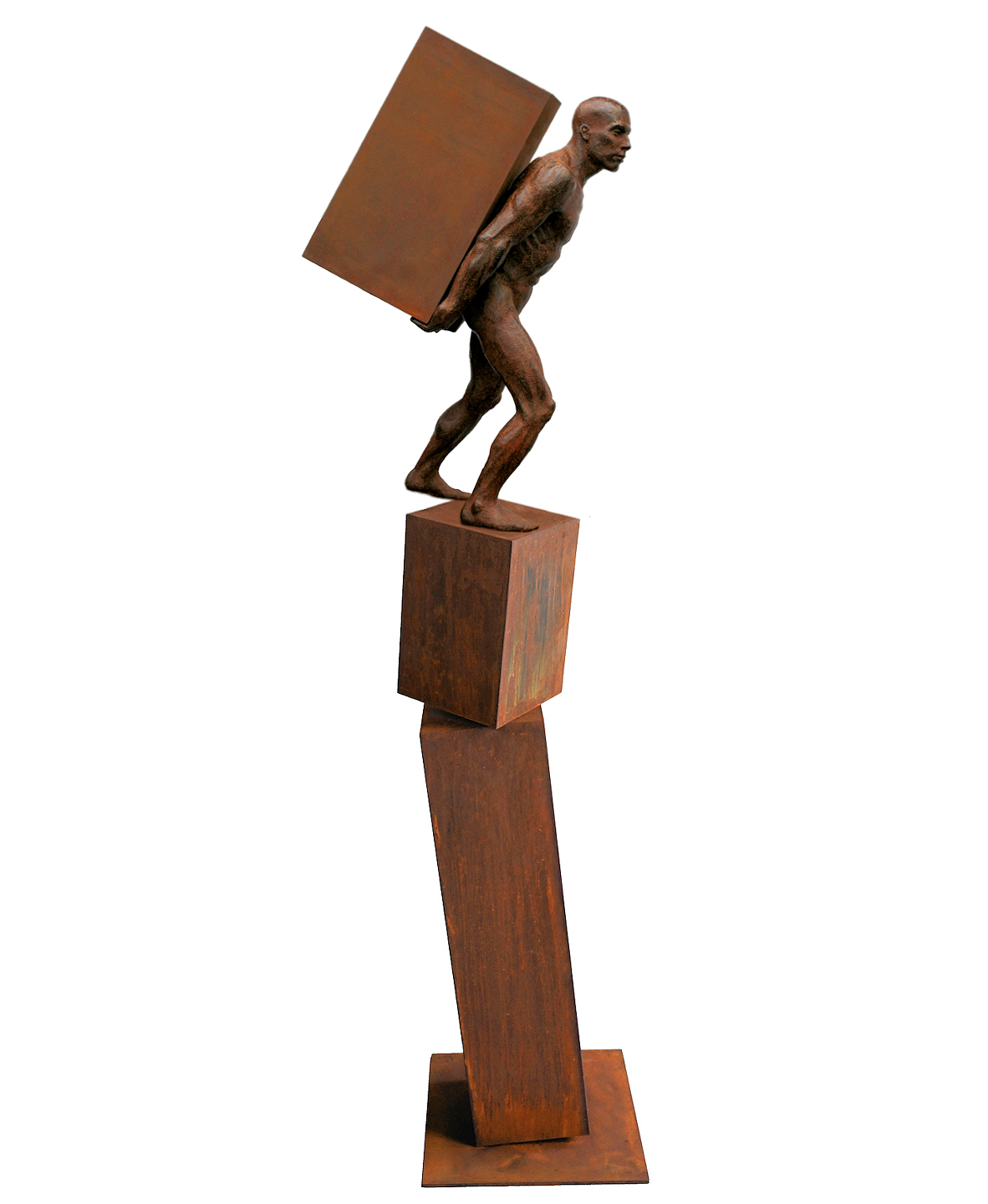 Het beeld is 62 cm hoog en voorzien van een cortenstalen zuil. De totale afmeting is 180 cm hoog