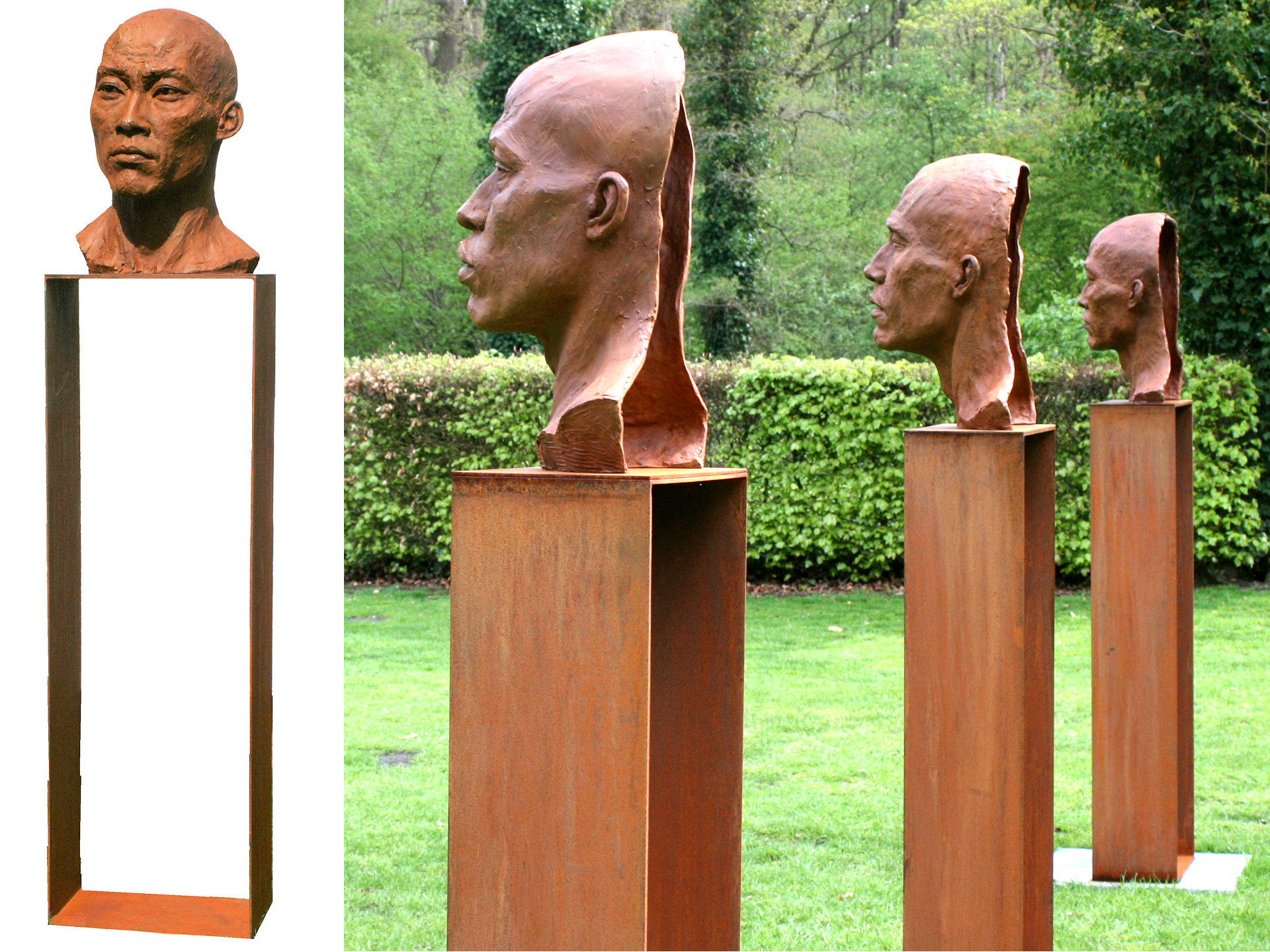 Het beeld is 58 cm hoog en voorzien van een cortenstalen zuil. De totale afmeting is 190 cm hoog