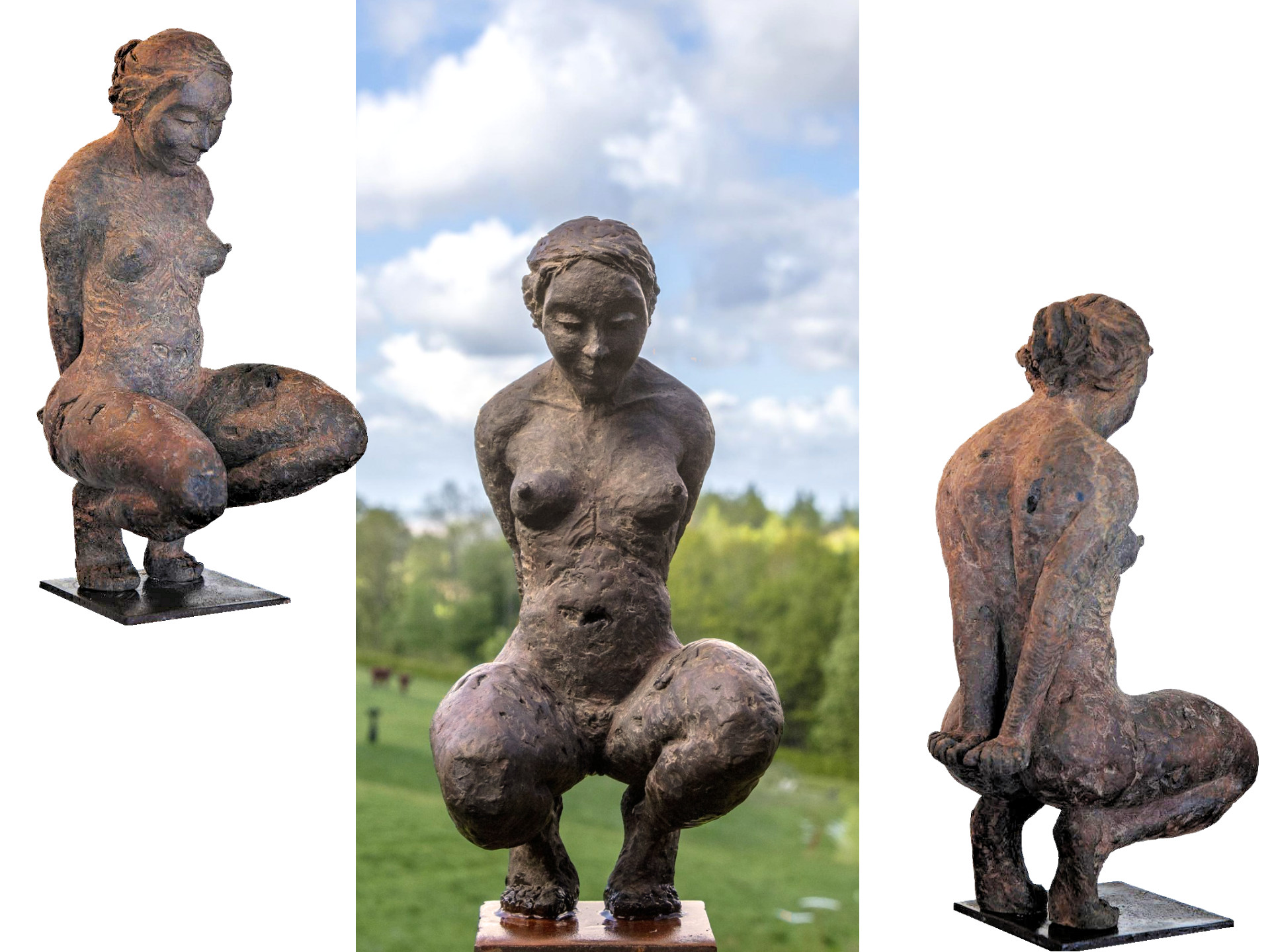 Het beeld is 30 cm hoog en voorzien van een cortenstalen voetplaat. De totale afmeting is 30 cm hoog