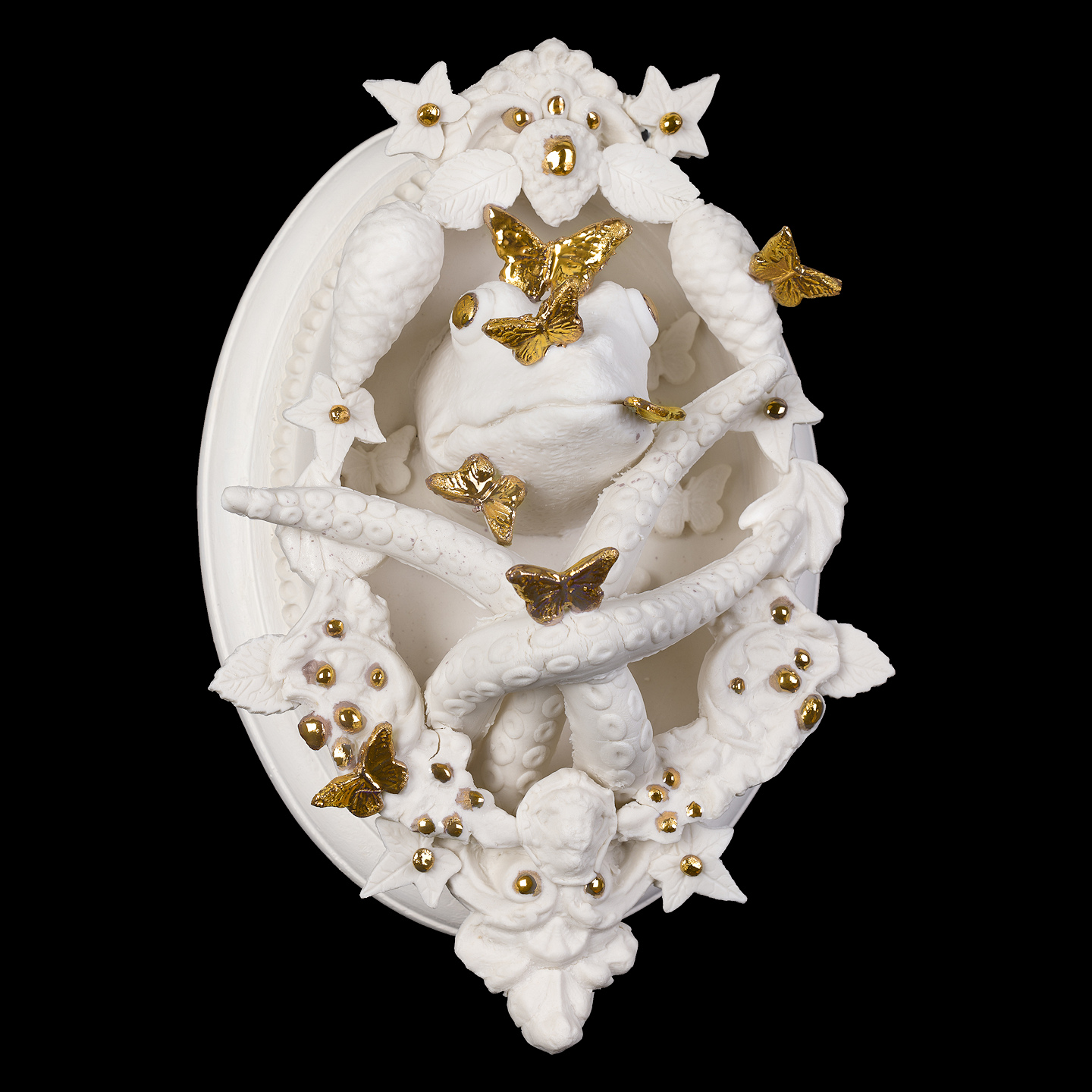 Het beeld is 22 x 15 x 10 cm en voorzien van een wandbevestiging. De totale afmeting is 22 cm hoog