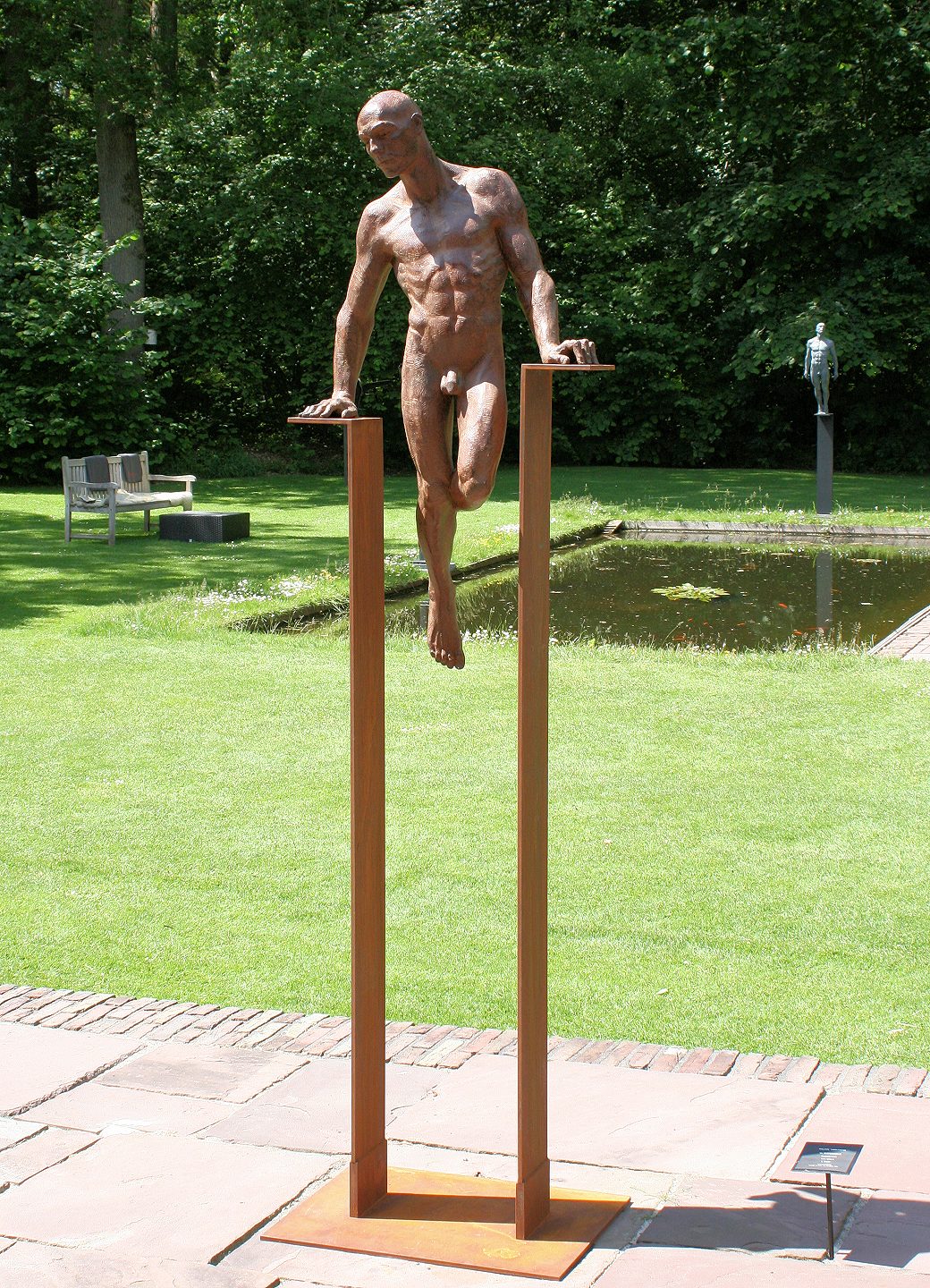 Het beeld is 90 cm hoog en voorzien van een cortenstalen zuil. De totale afmeting is 200 cm hoog
