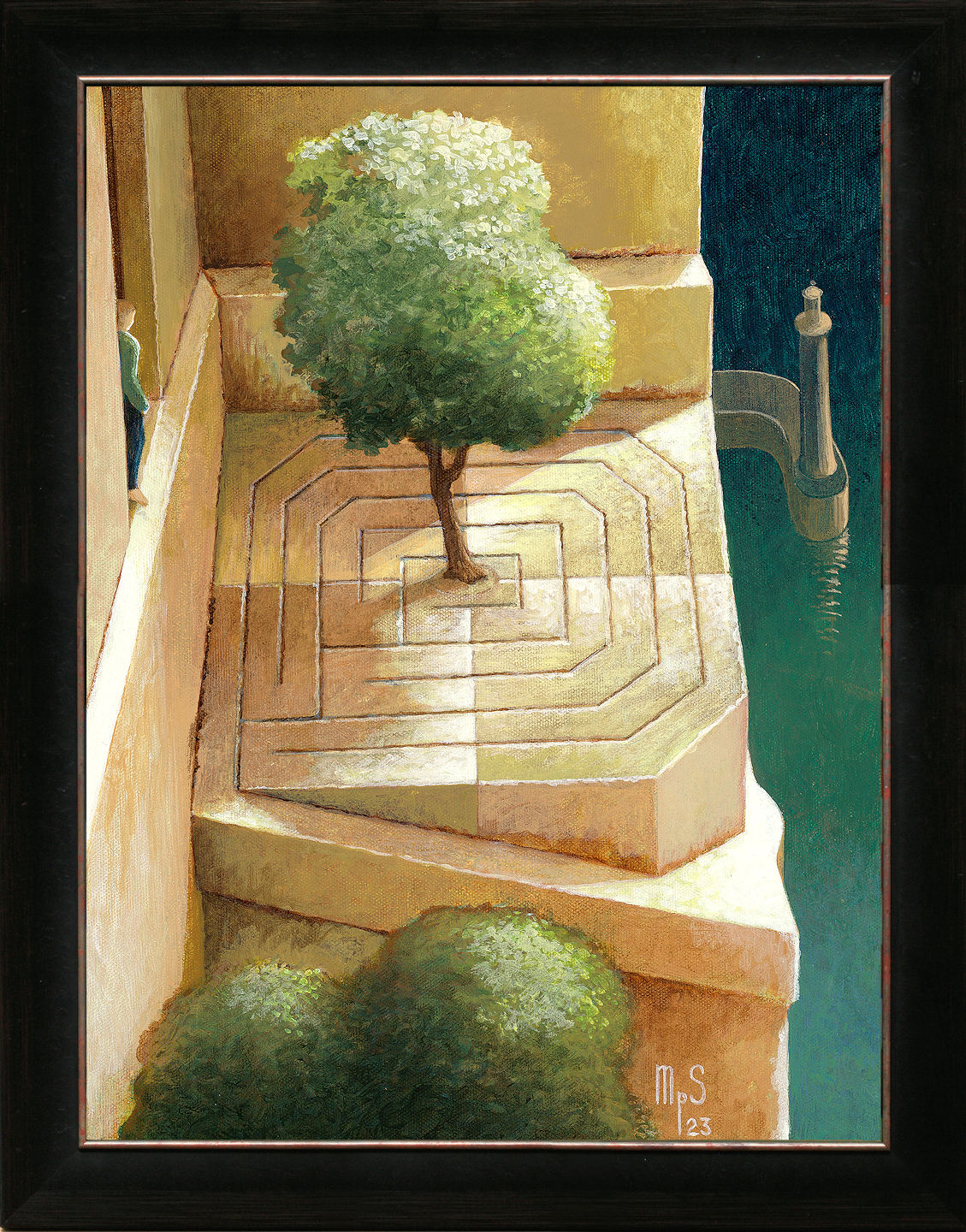 Doolhof | Het vermoeden architectuur schilderij van Michiel Schrijver