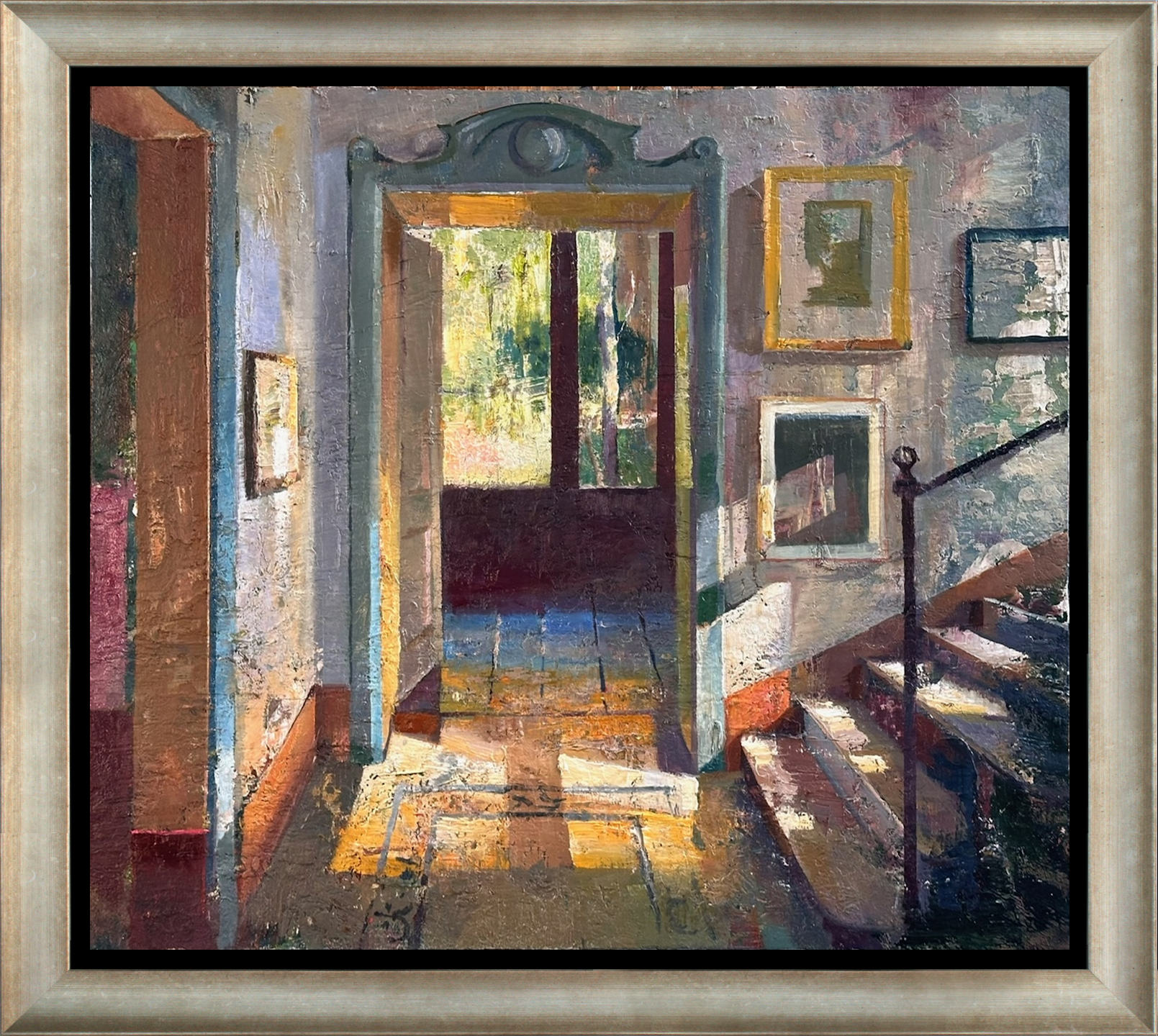 Het schilderij is 28 x 35 cm en voorzien van een zilveren houten baklijst. De totale afmeting is 40 x 47 cm