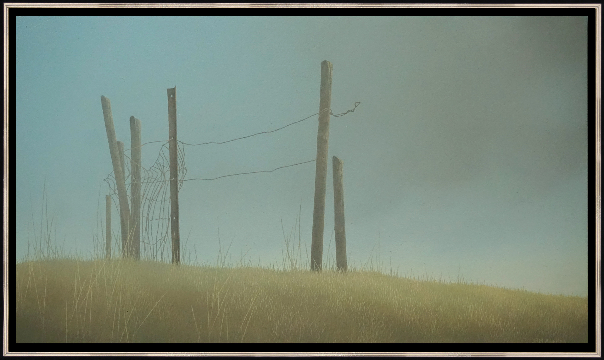 Het schilderij is 22 x 37,5 cm en voorzien van een subtiele zwarte baklijst met zilver rand. De totale afmeting is 27 x 43 cm