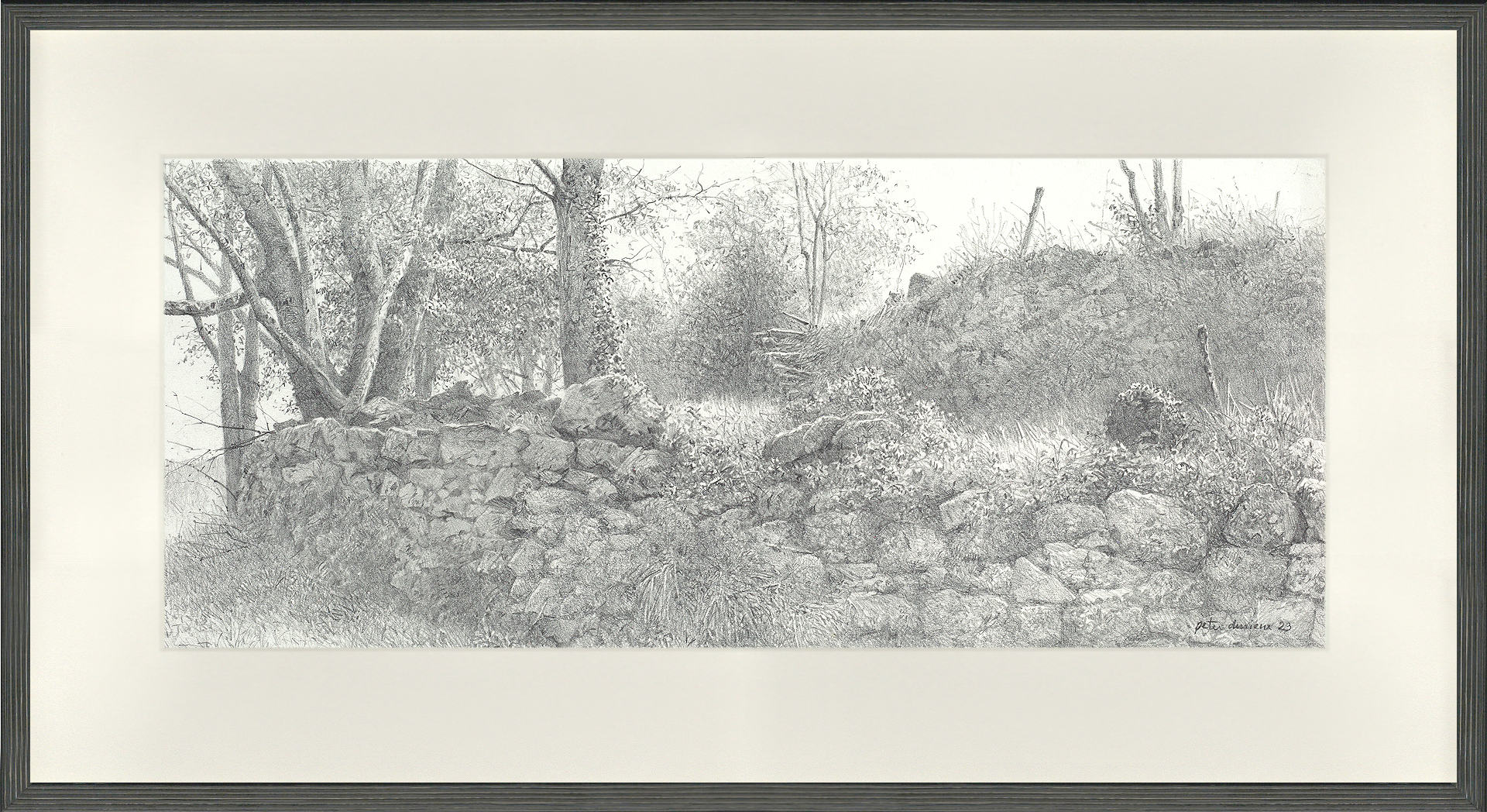 Het schilderij is 18 x 43 cm en voorzien van een subtiele donker grijze houten lijst met passepartout en museumglas. De totale afmeting is 33 x 58 cm
